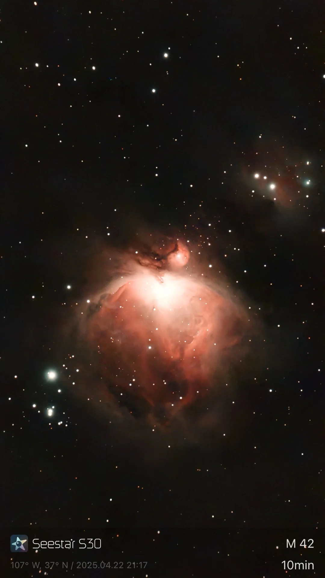 This image was captured with a special camera, compiling multiple exposures over time. Proprietary software was used to reveal this beautiful photo of the Orion Nebula. The Nebula has occupied a fixed position since creation though invisible to the naked eye.